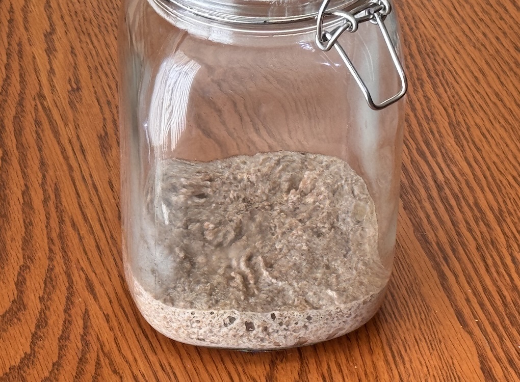 I used my favourite AI application, Perplexity, and asked, ‘What changes to my sourdough starter recipe do I need to make to switch the white flour to 100% whole wheat flour?’