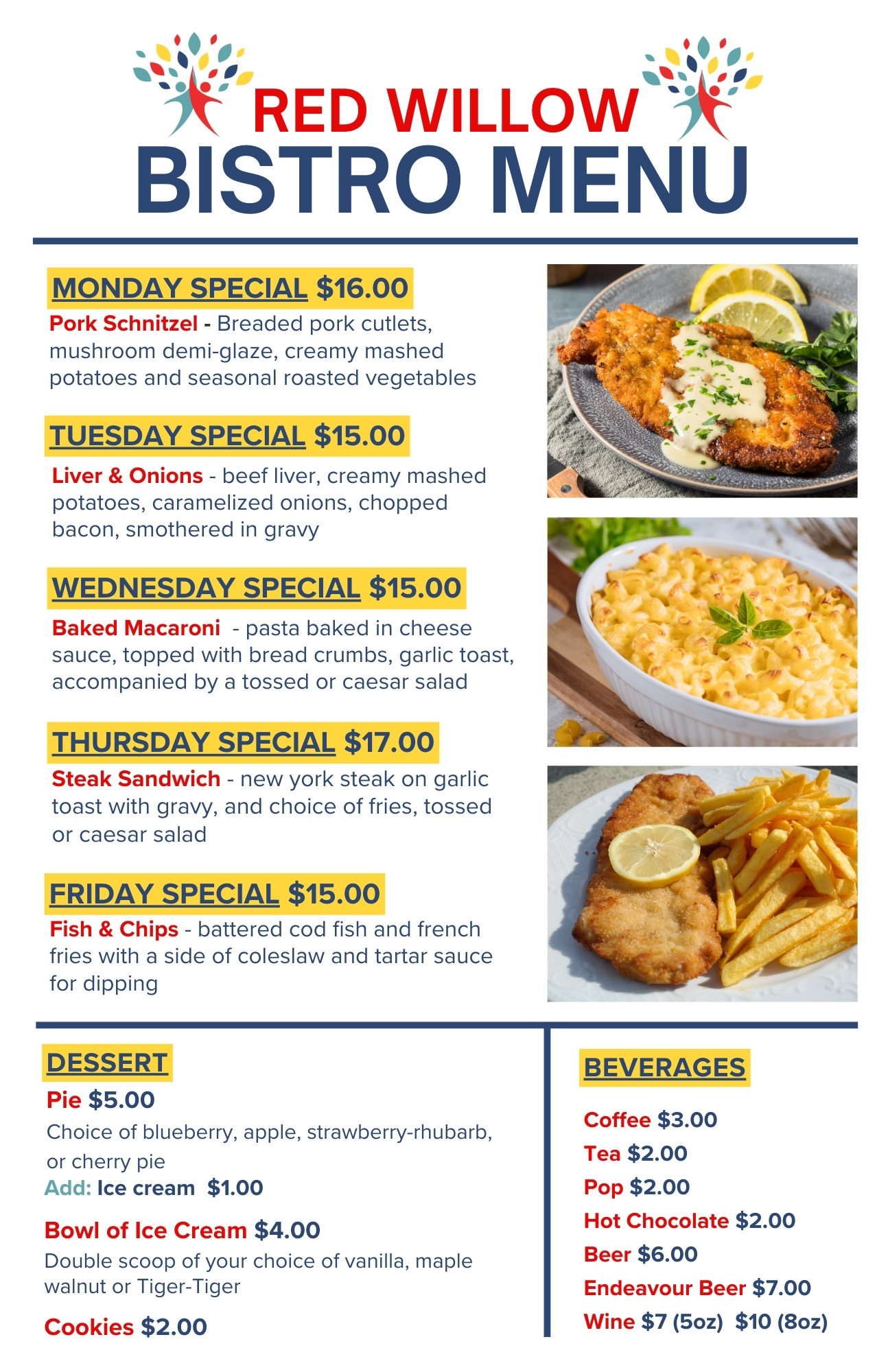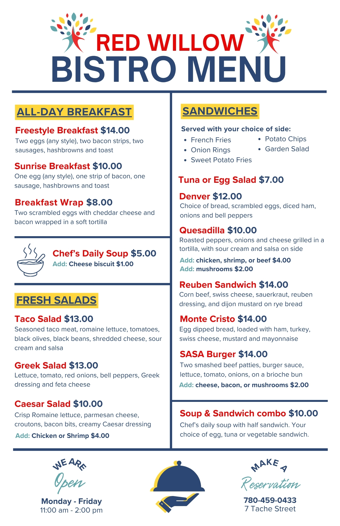 Red Willow Bistro is open for lunch. No Reservation Required. Check out our Daily Menu Online
